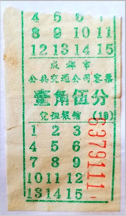 成都市公交公司壹角伍分车票(童华池收藏并拍摄)