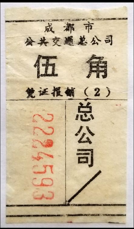 成都市公交公司伍角车票(童华池收藏并拍摄)