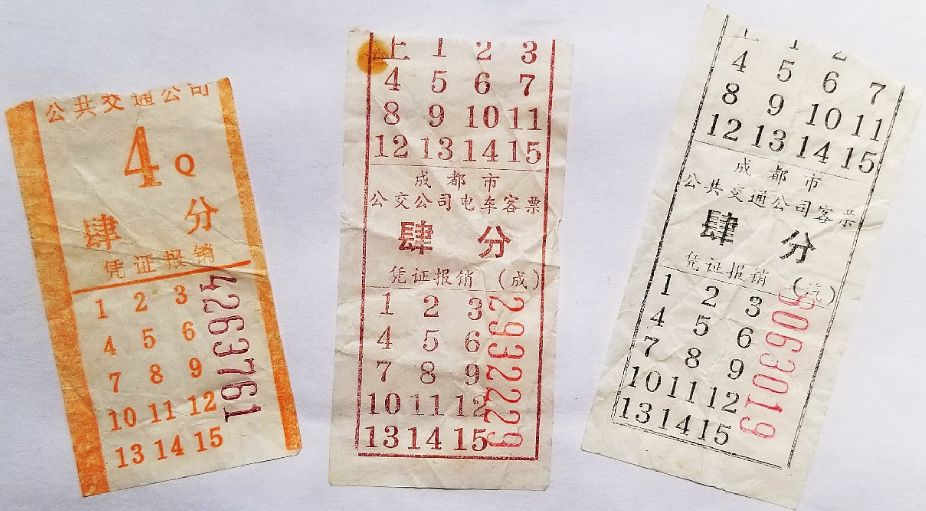 成都市公交公司肆分车票(童华池收藏并拍摄)