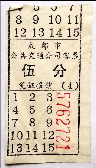 成都市公交公司伍分车票(童华池收藏并拍摄)