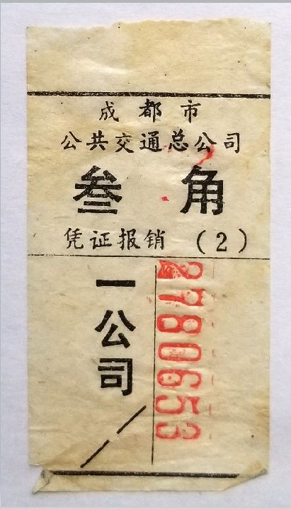成都市公交公司叁角车票(童华池收藏并拍摄)