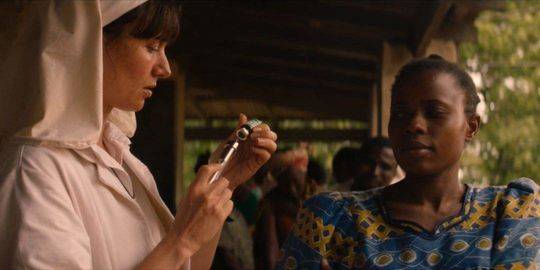《血疫》以双线叙事的方式讲述埃博拉病毒疫情的爆发:一条线是讲老一代科学家发现埃博拉病毒的过程,另一条线讲1989年美国华盛顿郊区发现本土第一例埃博拉病毒。这部美剧比《双螺旋》少了许多逻辑漏洞,编剧还借鉴《血疫:埃博拉的故事》这本非虚构小说,营造了一种“伪纪录片”的氛围——没有夸张的故事情节,没有惊悚的瘟疫描述,力求平铺直叙地讲故事。不过,总体平稳的背后其实夸大了病情——开头那段马尔堡病人发病的特写让人不寒而栗。此外,整个剧情中,研究者在P4实验室中的小心翼翼,包括灭杀病毒猴子的如临大敌,暗示着病毒的极度可怕。