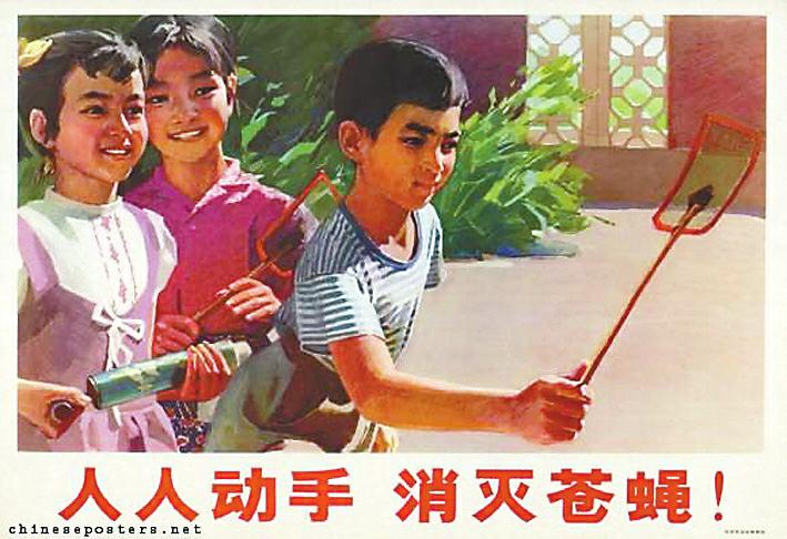 除“四害”,是爱国卫生运动中轰轰烈烈的一部分。1958年,中共中央、国务院发出《关于除四害讲卫生的指示》。广大群众积极参加,有效降低了蚊、蝇、鼠、蟑等病媒生物密度,显著减少了鼠疫、疟疾、乙型脑炎等疾病的发生和流行。全国6亿人民参与其中。