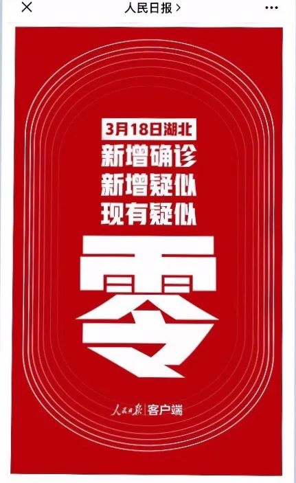 今日上午,人民日报客户端传来一个振奋人心的消息:3 月18日,湖北新增确诊、新增疑似、现有疑似病例首次实现“清零”!