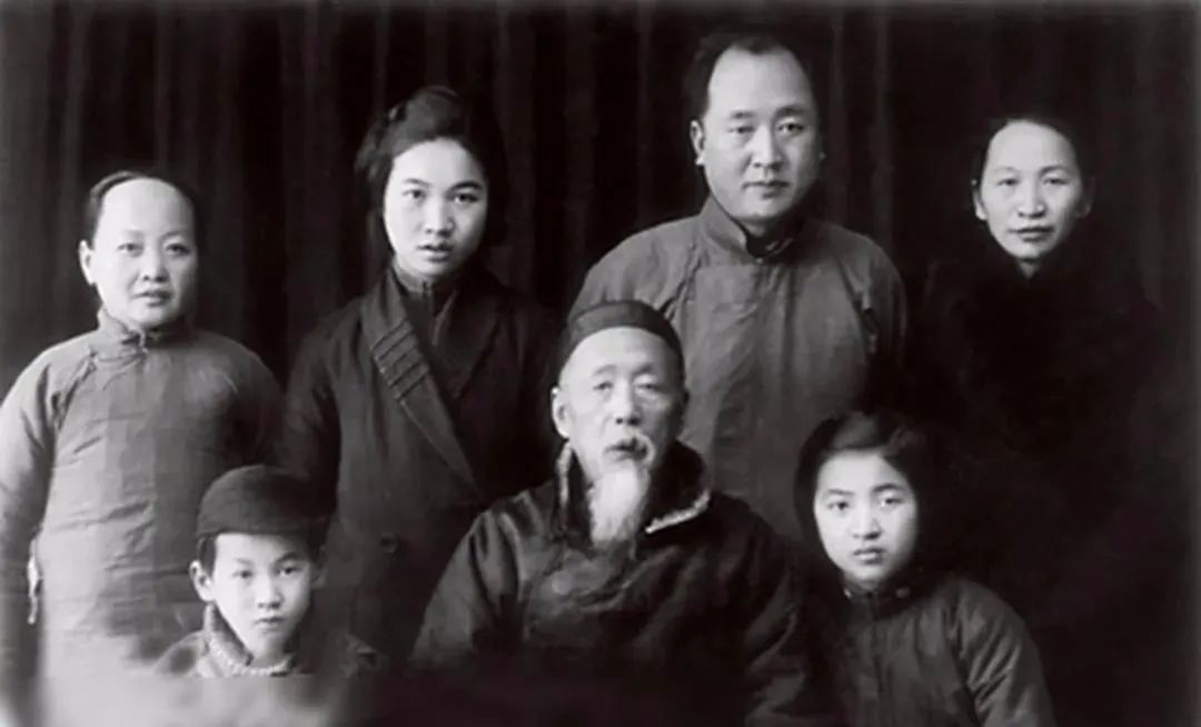 李济一家内撤前拍的全家福,小女鹤徵(前排右一)死于昆明,长女凤徵(后排左二)死于李庄(图片来源:李庄往忆)