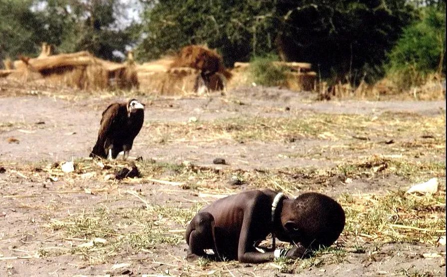 上世纪90年代,一张普利策新闻特写获奖照片震撼了所有人,一个瘦得皮包骨头的苏丹小女孩趴倒在地,身后不远处,一只硕大的秃鹰正贪婪地盯着奄奄一息的小生命,等待即将到口的一顿“美餐”。这张照片寓意着,儿童是战争、饥荒和瘟疫最易伤害的群体,同时,还有意想不到的天敌对他们造成威胁。