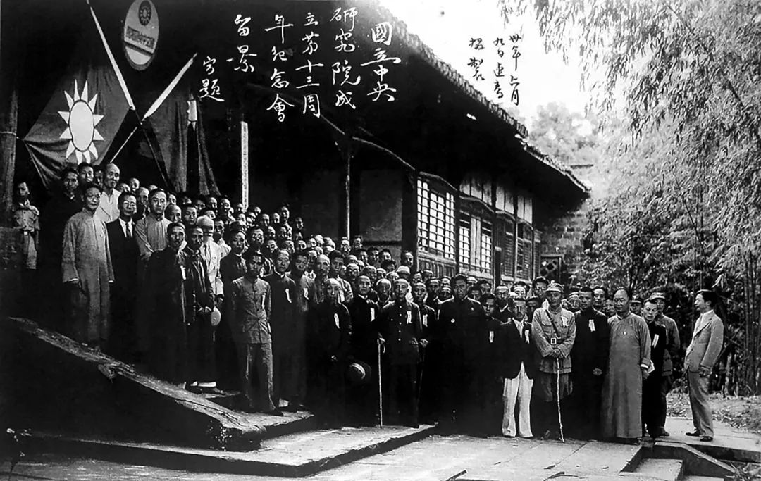 中央研究院成立十三周年在板栗坳栗峰山庄的合影,前排左一为罗南陔(图片来自网络)
