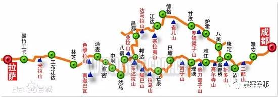 ——北线。由四川雅安至西藏拉萨,全长2412公里。1950年4月开始,1954年12月正式通车。
