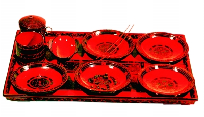 古代中国人分餐进食,一般都是席地而坐,面前摆着一张低矮的小食案,案上放着轻巧的食具,重而大的器具直接放在席子外的地上。后来说的“筵席”,正是这古老分餐制的一个写照。《后汉书·逸民传》记隐士梁鸿受业于太学,还乡娶妻孟光,夫妻二人后来转徙吴郡(今苏州),为人帮工。梁鸿每当打工回来,孟光为他准备好食物,并将食案举至额前,捧到丈夫面前,以示敬重。孟光的举案齐眉,成了夫妻相敬如宾的千古佳传。又据《汉书·外戚传》说:“许后朝皇太后,亲奉案上食。”因为食案不大不重,一般只限一人使用,所以妇人也能轻而易举。