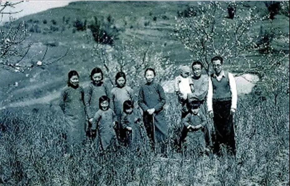 梁思成一家与亲友在李庄,右一为梁思成,左三为林徽因(来自《发现李庄》,岱峻著,四川文艺出版社,2004)