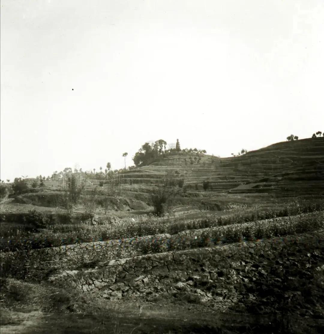 梁思成在李庄期间,拍下的照片并不多,即使像李庄的头牌风景奎星阁,也未进入到他的镜头,这可是“上海到宜宾二千多公里长江江边建造得最好的亭阁”,梁思成曾经这样夸赞过它。可见,这座字库塔于他来讲,有着特殊的意义,以至于珍惜每一张胶卷的他,在离开字库塔时还屡屡回望,忍不住再次架起相机,拍下它孤独的远景图。