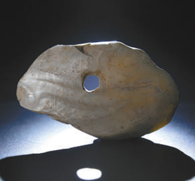 图为甑皮岩遗址出土的穿孔蚌器