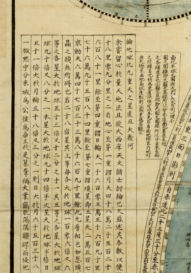 一是颠覆了天圆地方的观念。中国传统对于天地的认知是“天圆如张盖、地方如棋局”,虽然东汉张衡《浑天仪图注》言“天之包地,犹壳之裹黄”,郑和下西洋之后《明史·天文志》也有“地圆说”的记载,但是,无论是政治、文化还是信仰,无不由此引发开来,深入到生活之中。例如祭坛、陵墓、宫殿等建筑,都是从天圆地方的观念中生发出来的,古代货币是外圆内方,古人在处事上讲究外圆内方等等。利玛窦在他的笔记中对当时中国人的这种观念也进行了描述:“他们认为天是圆的,但地是平而方的,他们深信他们的国家就在它的中央……他们不能理解那种证实大地是球形、由陆地和海洋所构成的说法,而且球体的本性就是无头无尾的。”《坤舆万国全图》所表现的地球为一圆球,小图更阐释了地球是一个球星的概念,完全颠覆了中国的传统认知,向国人直观展示了这种球形空间。