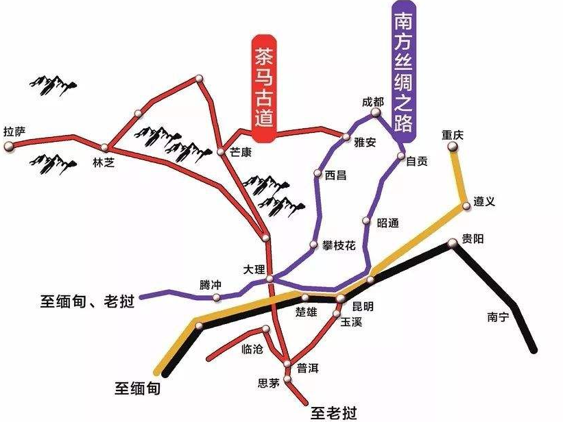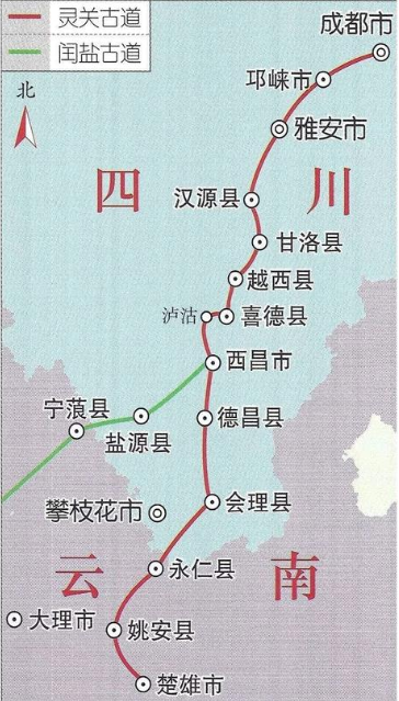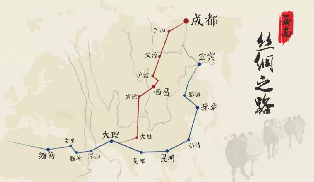 至此,从成都出发,经邛崃的“临邛道”,名山、荥经的“青衣道”,汉源、越西的的“牦牛道”,连西昌“建昌道”,渡金沙江,进入云南,至大理,境内连成一线。
