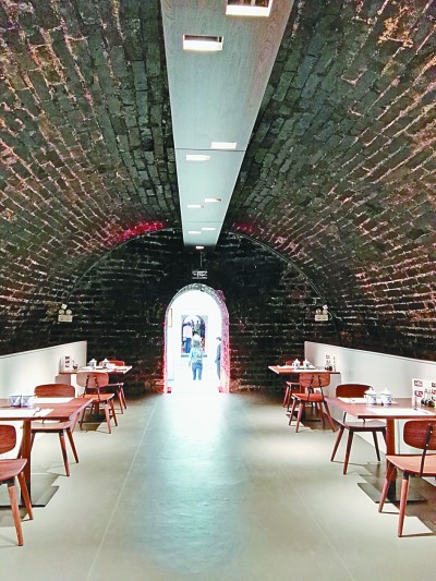 改造成观众餐厅后的冰窖内部,仍可以清楚看到建筑材质和样式。李韵摄/光明图片