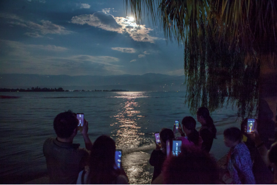 邛海湿地步步是景,“虽由人作,宛自天开”。漫步湖滨休闲步道,自行车环湖骑行,置身花鸟树、草木石间,坐竹筏听渔民故事,遮绿荫健身康体,饱览湖光山色,闲看鸥鹭起落,既是亲朋好友的休闲聚会同乐,也是一种超然的独处时光,观风景的同时,也成为别人眼中的风景。特别是天朗气清时,不经意间抬头,会惊喜地发现月亮在蓝天白云的背景里悄悄露脸,不动声色地、慢慢地巡游着这片土地。