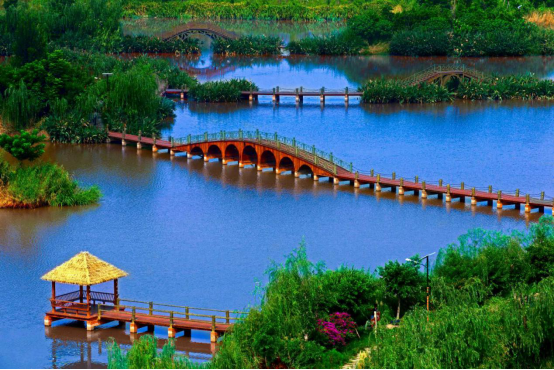 “梦里水乡”湿地公园,南起观鸟岛湿地保护区一期的小海,北达新海河出口,东临邛海岸线,西至滨海路人行健身步道,占地2600亩。