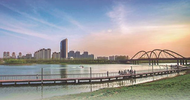 如今。御河水上也有一座横架东西的如虹“飞桥”,母子桥中的母桥——夏荫桥,由榫卯结构契合而成,不用一根钉,通体酒红,和御河中碧绿的荷叶遥相呼应,在建桥史上堪称一绝。