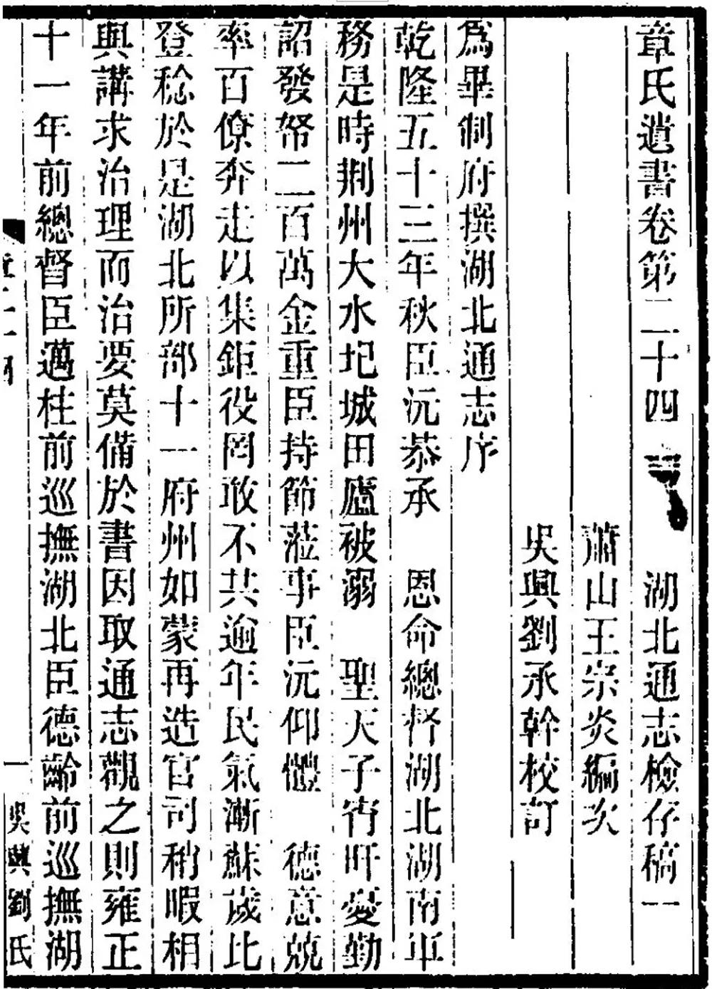 《章学诚遗书》第二十四卷《湖北通志》序及凡例(部分)