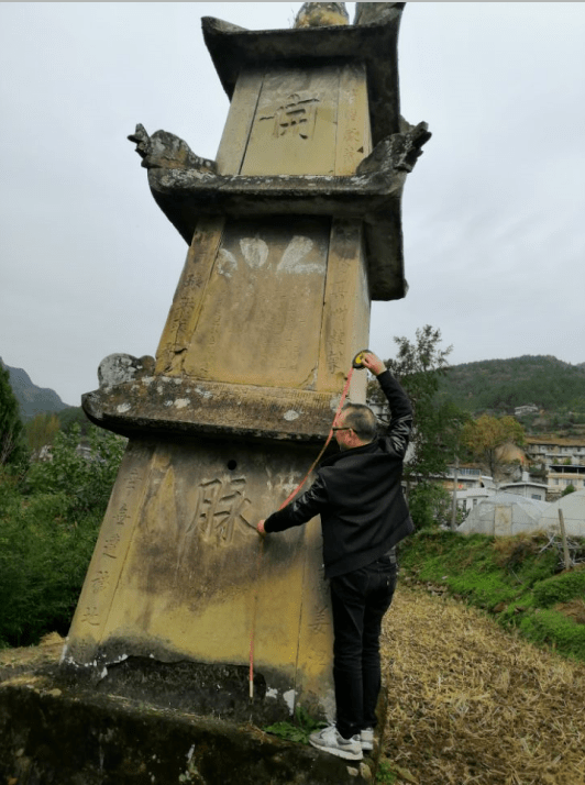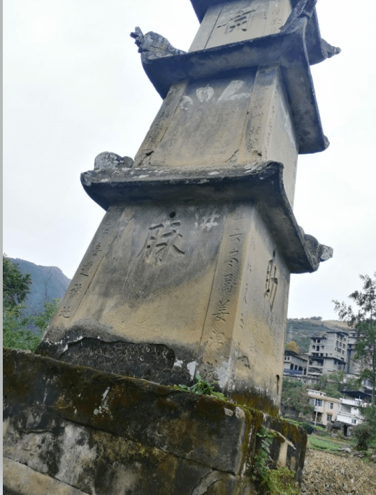 2020年11月1日,笔者在该地进行野外调查时,偶然遇见当地83老人袁朝群(女)。老人介绍,她小时候听婆婆讲,这个塔子在她婆婆小时候就已经有了;听婆婆的前人说,当时这个塔子还有几层,由于建成后将一湾水(地名)那里的风水档了,附近数里鸡不鸣、狗不叫,于是他们便组织人员一夜之间悄悄将塔子上面几层拉掉了,一直没有恢复。