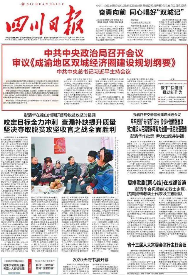 今年10月,中共中央政治局会议审议《成渝地区双城经济圈建设规划纲要》,明确提出,要使成渝地区成为具有全国影响力的重要经济中心、科技创新中心、改革开放新高地、高品质生活宜居地,打造带动全国高质量发展的重要增长极和新的动力源。