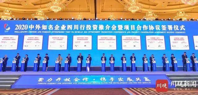 11月,2020中外知名企业四川行投资推介会暨项目合作协议签署仪式上,879个项目签约,投资金额近9000亿元(图片来源:四川在线)