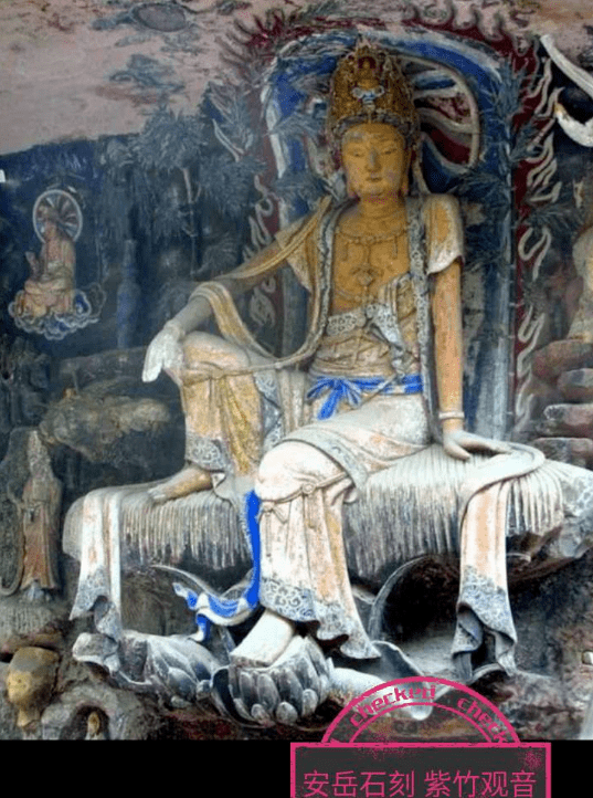 水月观音的形象,除了在安岳石刻,在美国纳尔逊阿特金斯艺术博物馆,以及美国纽约大都会博物馆你也能看到(这是流失在国外的国宝),在国家重点文物保护单位山西省双林寺内你也能看到,在世界文化遗产四川大足石刻里照样能看到。当然,在怀德白塔这座面目全非的佛塔上,曾经也能看到。