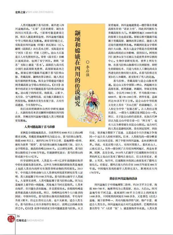 【历史文化】李后强 ‖ 颛顼和嫦娥在四川的传说研究
