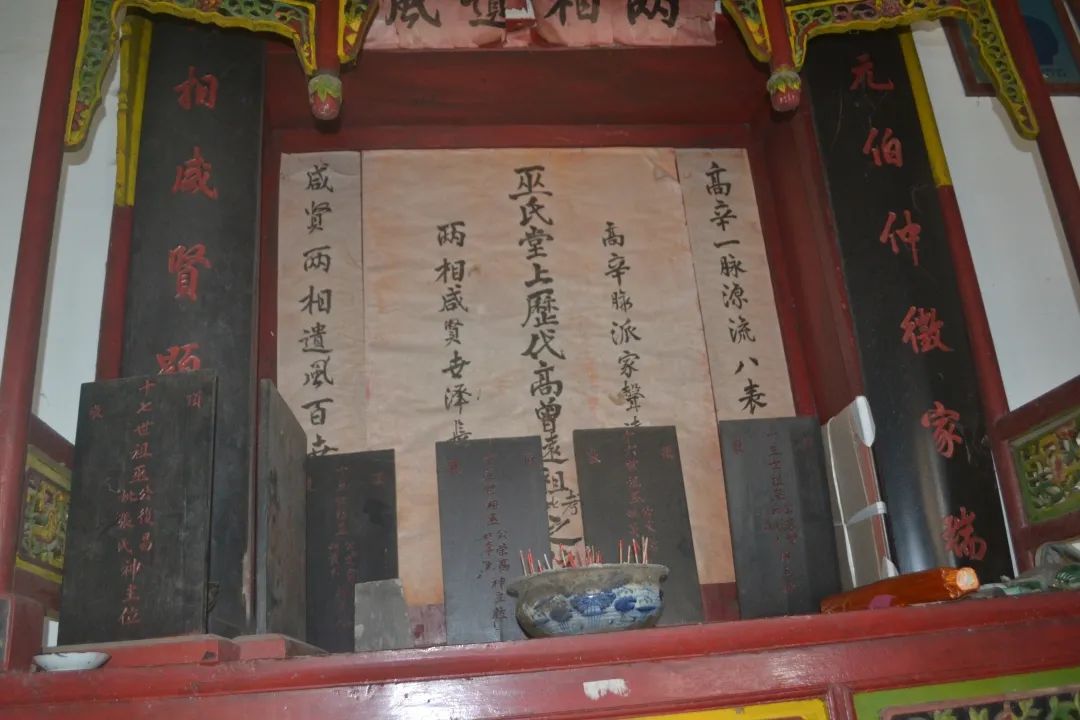 独特的家族神龛,两旁 “高辛脉派家声远,两相咸贤世泽长”,中行 “巫氏历代高曾远祖之位”,这种专写族源的神龛,不涉及天、地、君,与四川许多其他湖广移民相异。