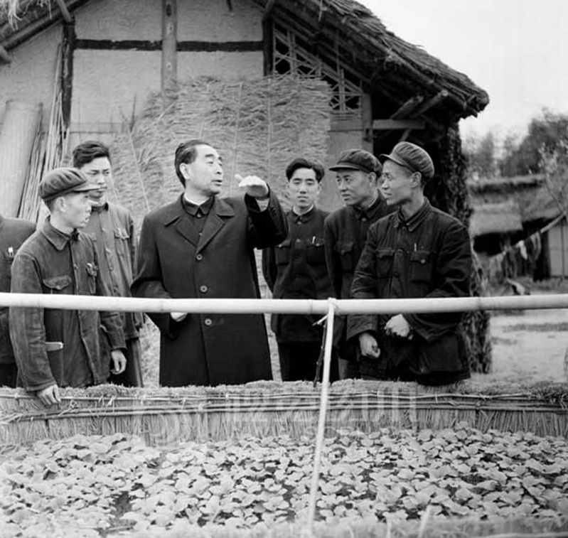 1958年3月19日,周总理在成都郊区农村察看蔬菜温床育苗。沈志均 摄影(视觉四川资料图片)