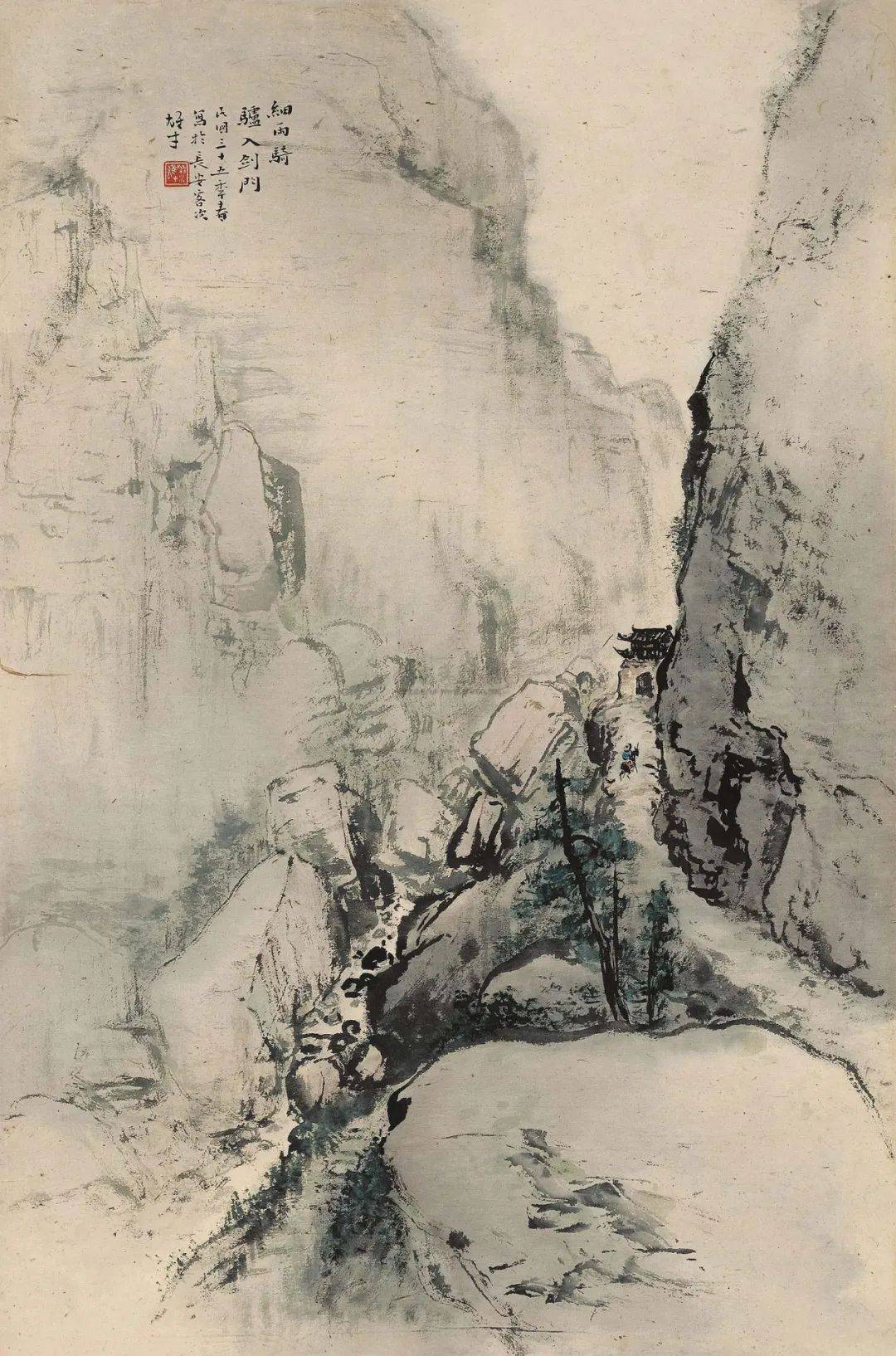 《细雨骑驴入剑门》中国画 1946年 黎雄才 作