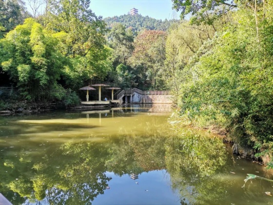 今“滴水岩”周边树木高大葱茏,已难觅“绿竹”之踪影。笔者记忆中,上世纪80年代经常携同学上凤凰山、登红军亭,那时的凤凰山与秃山无异,只有稀松的杂草和矮植灌木,鲜见高大乔木。据郑景瑞老师介绍,80年代之前,凤凰山的植被因人为砍伐,破坏殆尽。“凤岗绿竹”之“竹”自然也难以幸免,所以今天已无法看到古时“绿翠万里”的景致了。80年代初,政府开始规划建设凤凰山公园,并对凤凰山实行封山育林和植树造林。今天凤凰山的茂密植被、绿树成荫,是近40年时间持续建设保护之功。