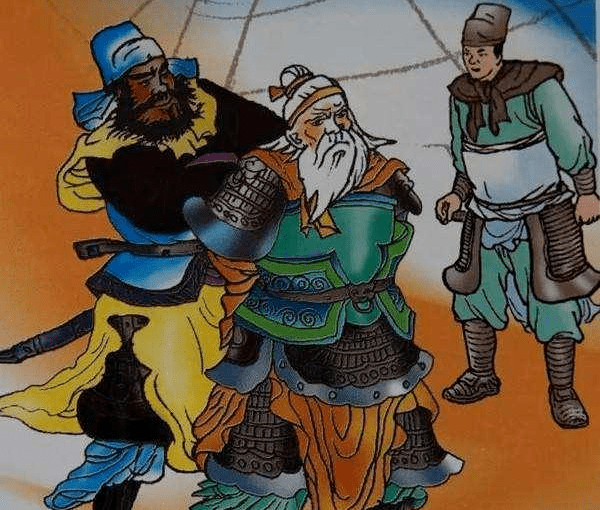 《三国志•张飞传》载,严颜被俘后,飞怒目咬牙大叱曰:“大将到此,何为不降,而敢拒敌?”严颜全无惧色,回叱飞曰:“汝等无义,侵我州郡!但有断头将军,无降将军!”飞大怒,喝左右斩来。严颜喝曰:“贼匹夫!砍头便砍,何怒也?”张飞见严颜声音雄壮,面不改色,乃回嗔作喜,下阶喝退左右,亲解其缚,取衣衣之,扶在正中高坐,低头便拜曰:“适来言语冒渎,幸勿见责。吾素知老将军乃豪杰之士也。”严颜感其恩义,乃降。