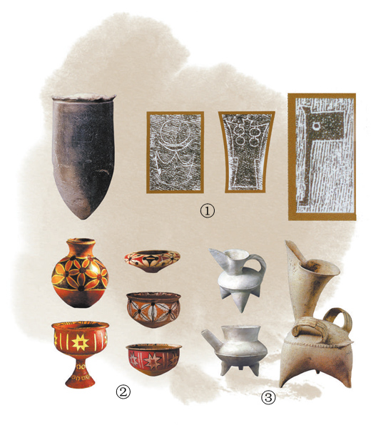 图③为大汶口文化晚期的白陶。