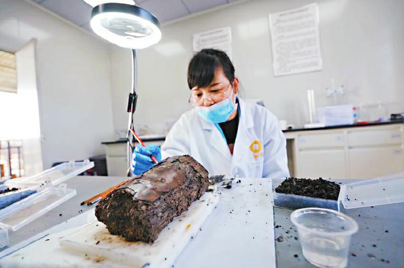 “太湿润了不行,太干了也不行。若是象牙出土后,外部环境过于干燥,就容易产生开裂,进而粉化,因此象牙保护难度较大。”蒋璐蔓说。针对这种情况,目前团队最紧急的任务就是给象牙“保湿”,减少出土环境与埋藏环境的差异,与四川大学、四川师范大学合作研发的象牙保湿新材料也将运用到三星堆象牙的“保湿”中。