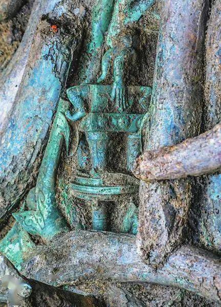 这次祭祀区的发掘,再度发现了这些文化交流的有意思之处。比如中原文化的云纹,在这里放大作为三星堆符号;长江中下游青铜器,肩部会有连体小鸟、兽头挂在肩部,这次3号坑发现的几件文物也能看到这种特点。这些文化特征很有意思:这些青铜容器看上去属于中原文化系统,却形成了与中原文化不一样的东西。