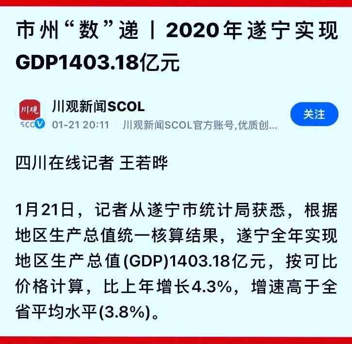 2021年1月21日“川观新闻”对遂宁的报道截图