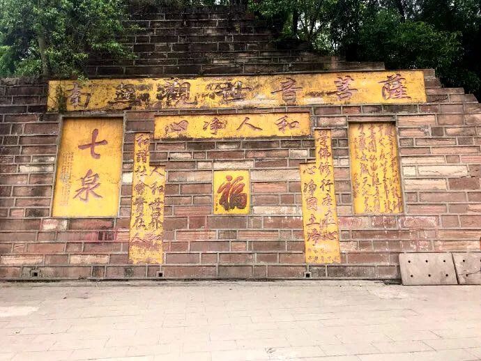 在一块工工整整镌刻着“七泉”二字的莫大石壁前,一位学者模样的中年游人告诉我,把七个“泉”字并排放在一起打头,写出一首妙不可言的古诗来,这是宋代大诗人苏轼的独创!