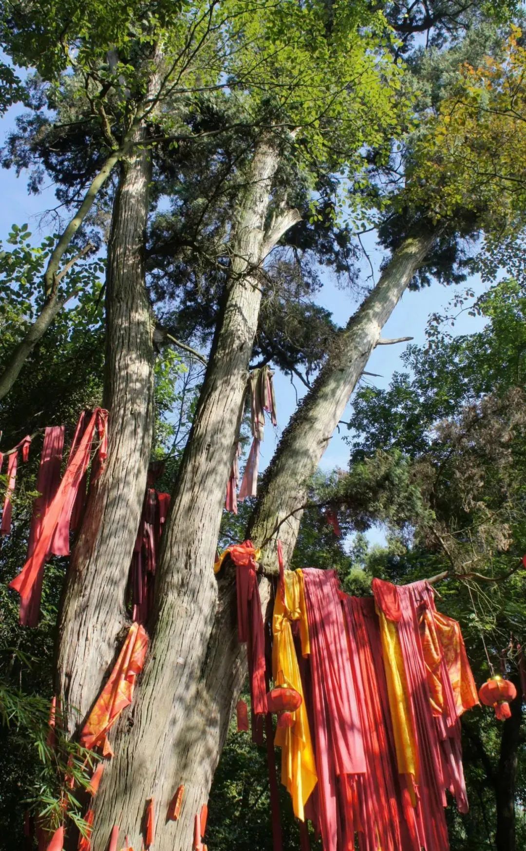 我们沿着古色蜿蜒的石板路信步而行,来到香火缭绕的观音殿。游人们纷纷取来茶杯和小碗,排着不长不短的队伍,有滋有味地品尝起殿内的“圣水”来。他们不仅是在用甘泉来解渴,而且也是以此表达对观音文化的认同。神秘动人的传说、苍翠挺拔的林木和色碧味甘的泉水,让游人们在檀香弥漫的圣境中体会到一抹淡淡的禅意。