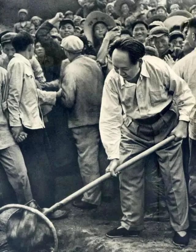 1958年5月25日,毛泽东主席十三陵水库参加劳动(侯波 摄,图片来源:中国新闻网)