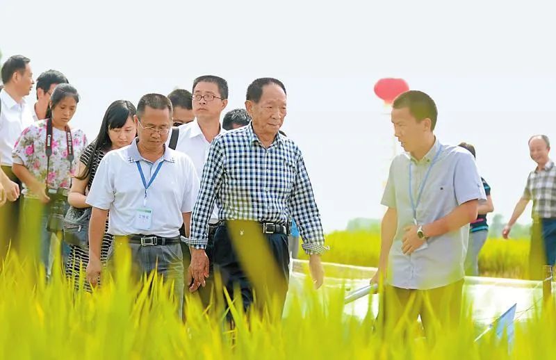 2012年夏季,82岁的袁隆平来到成都专门查看杂交水稻新品种“Y两优973”。当时正值水稻收割之际,烈日当空。“他不戴草帽也不打伞,走路像跑,脱鞋就下了田。”