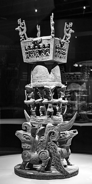位于四川省广汉市的三星堆博物馆拍摄的出土于三星堆2号“祭祀坑”的青铜神坛。新华社发