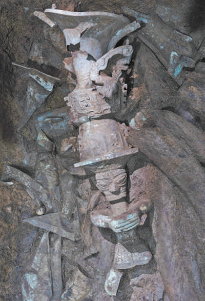 图为三星堆3号祭祀坑中的铜顶尊跪坐人像。王明峰供图