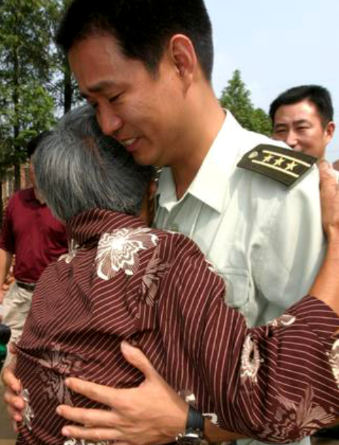 2004年8月,聂海胜携妻子聂捷琳回到离别13年的家枣阳市探望母亲,母子相拥而泣