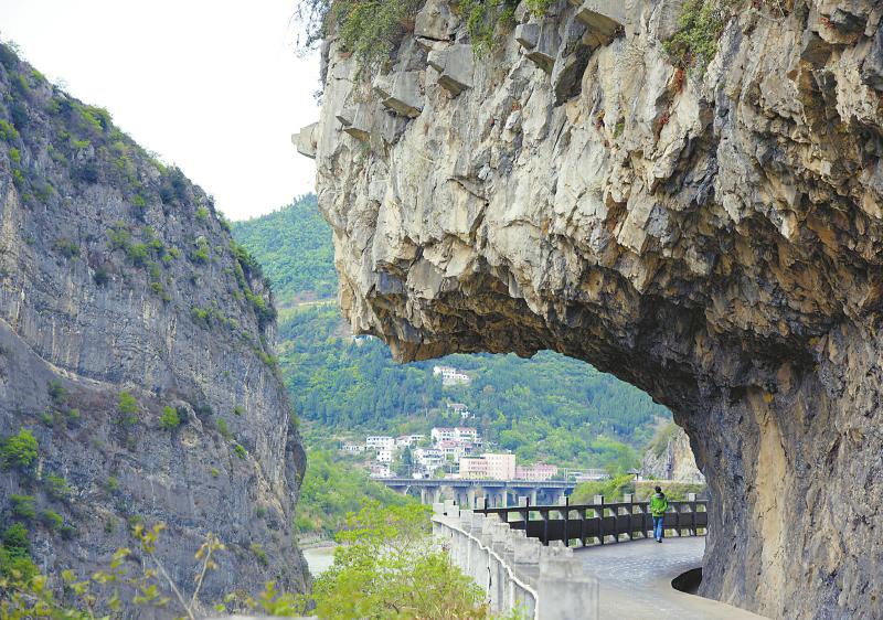 上世纪90年代末才凿通3公里的明月峡隧道,与“老虎嘴”共同分担交通,“5·12”汶川特大地震后,“老虎嘴”结束了它80多年的交通使命,进入今天明月峡露天交通博物馆,与古栈道一起接受游客观瞻凭吊,怀古思幽。