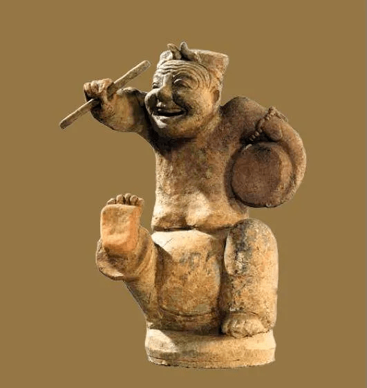 秦汉时代的说唱艺人被称为“俳优”,秦朝的皇宫大院里十分盛行蓄养俳优之风,刘向在《说苑·反质篇》中记载,秦始皇统一天下后,“修离宫数百所,倡优成千”,《史记·滑稽列传》说:“优旃者,秦倡侏儒也。善为笑言。然合于大道。”所以说唱俑也叫 “侏儒俑”。到了两汉时期,随着艺术思想的解放和发展,说唱音乐在民间也盛行起来,社会各阶层都不乏热衷俳优表演之辈。