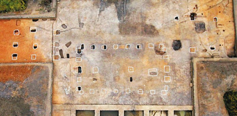 最让人感到惊喜的,是在这座具有防御功能的芒城遗址上,发现了一座迄今为止在成都平原上时代最早、保存最完好的小型房址。房屋为地面长方形的双间套房,面积50余平方米,居住面积墙体基础部分保存完好,其墙体修筑是先挖墙基槽,于基槽内埋密集圆竹,形成竹笆墙,于内外抹草拌泥,再经火烘烤,房顶盖草,实为川西农家建筑的雏形。据考古专家介绍,房屋的建筑形式是古蜀先民为适应其所处的环境创造出来的,它可能意味着4000多年前生活在芒城的原始聚落趋于解体,出现了以单独家庭作为社会的单元。因此,被学者赞为“成都平原第一房”,这对研究当时的婚姻、家庭及社会性质具有重要意义。
