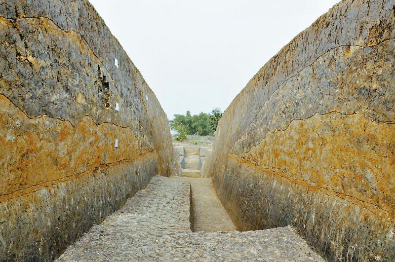 芒城遗址是当时古蜀先民为保护自己的土地、财富,防御敌人的进攻而建。其内外城垣系同期修筑,均为夯筑而成。两道相距20余米的城垣之间形成一道深4米多的壕沟环绕整体遗址,壕沟内的淤泥充分证明当时壕内长期蓄满了水,说明当时生活在成都平原上的古蜀先民所具有的防御技巧。