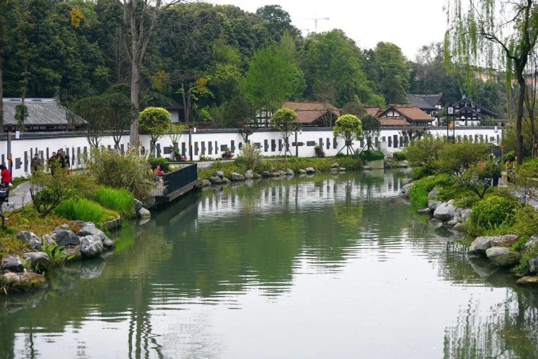 唐朝中期,我国大诗人杜甫因避“安史之乱”来到成都,在浣花溪畔营建了一所草堂。他曾以诗描绘了当时那里的环境:“清江一曲抱江流,长夏江村事事幽”,“风含翠筱娟娟净,雨裹红蕖冉冉香”,“两个黄鹂鸣翠柳,一行白鹭上青天”。诗人笔下的浣花溪,完全是一幅竹木葱茏、碧水悠悠而又充满生机的田园画图。