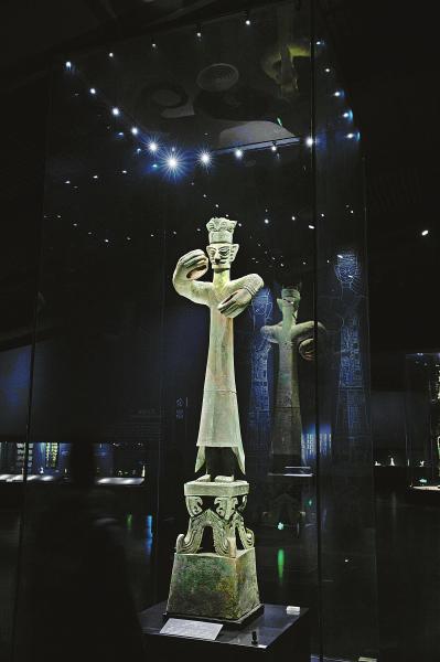 三星堆青铜大立人。新华社记者沈伯韩摄